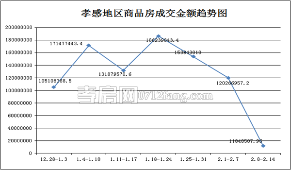 據(jù)孝房網(wǎng)數(shù)據(jù)研究統(tǒng)計,從2016年2月8日到2016年2月14日,孝感地區(qū)銷售總交易記錄24套,面積為2569.44平方米,金額為11848507.96元,均價為4611.32元/平方米。
