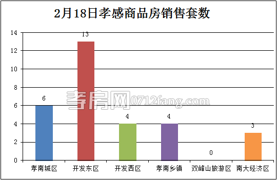 2月18日,全市的銷售套數(shù)為30套,其中孝南城區(qū)為6套,開發(fā)東區(qū)為13套,開發(fā)西區(qū)為4套,孝南鄉(xiāng)鎮(zhèn)為4套,南大經(jīng)濟(jì)區(qū)為3套。