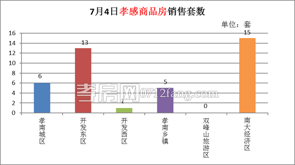 7月4日,全市的銷售套數(shù)為40套,其中孝南城區(qū)為6套,開發(fā)東區(qū)為13套,開發(fā)西區(qū)為4套,孝南鄉(xiāng)鎮(zhèn)為5套,南大經(jīng)濟(jì)區(qū)為15套。