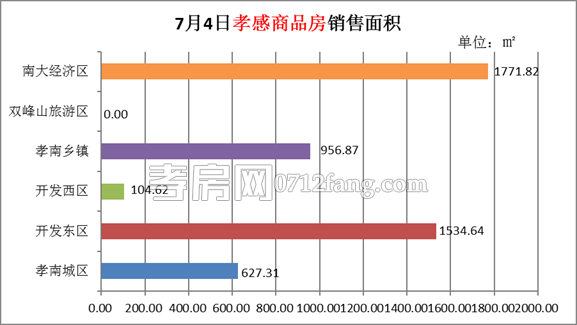 7月4日,全市的銷售面積4995.26㎡。其中孝南城區(qū)為627.31m²,開發(fā)東區(qū)為1534.64㎡,開發(fā)西區(qū)為104.62㎡,孝南鄉(xiāng)鎮(zhèn)為956.87㎡,南大經(jīng)濟(jì)區(qū)為1771.82m²。
