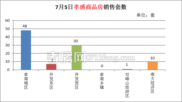 7月5日,全市的銷售套數(shù)為48套,其中孝南城區(qū)為7套,開發(fā)東區(qū)為30套,孝南鄉(xiāng)鎮(zhèn)為1套,南大經(jīng)濟(jì)區(qū)為10套。