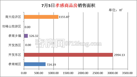 7月5日,全市的銷售面積5000.51㎡。其中孝南城區(qū)為724.19m²,開發(fā)東區(qū)為2994.13㎡,孝南鄉(xiāng)鎮(zhèn)為126.32㎡,南大經(jīng)濟(jì)區(qū)為1155.87m²。