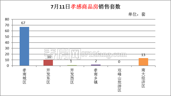 7月11日,全市的銷售套數(shù)為96套,其中孝南城區(qū)為67套,開發(fā)東區(qū)為10套,開發(fā)西區(qū)為1套,孝南鄉(xiāng)鎮(zhèn)為2套,南大經(jīng)濟(jì)區(qū)為13套。