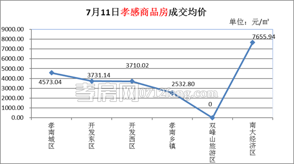 7月11日,全市的成交均價為4989.06元/㎡。其中孝南城區(qū)為4573.04元/㎡,開發(fā)東區(qū)為3731.14元/㎡,開發(fā)西區(qū)為3710.02/㎡,孝南鄉(xiāng)鎮(zhèn)為2532.80/㎡,南大經(jīng)濟(jì)區(qū)為7655.94/㎡。