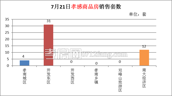 7月21日,全市的銷售套數(shù)為47套,孝南城區(qū)為4套,開發(fā)東區(qū)為31套,南大經(jīng)濟(jì)區(qū)為12套。