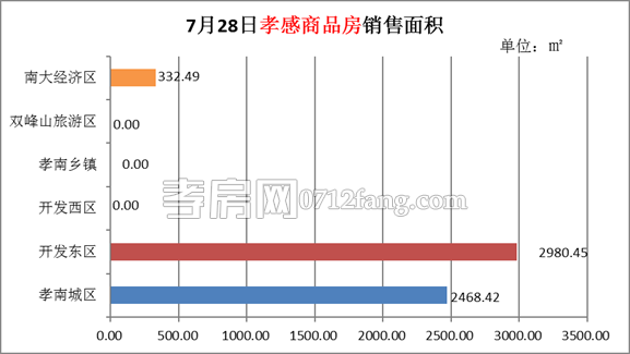 7月28日,全市的銷售面積5781.36㎡。孝南城區(qū)為2468.42㎡,開發(fā)東區(qū)為2980.45㎡,南大經(jīng)濟(jì)區(qū)為332.49m²。