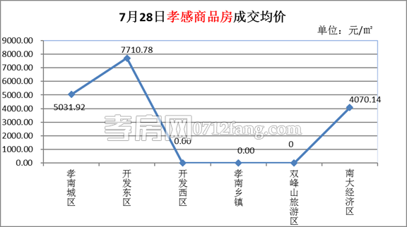 7月28日,全市的成交均價(jià)為6357.63元/㎡。其中孝南城區(qū)為5031.92元/㎡,開發(fā)東區(qū)為7710.78元/㎡,南大經(jīng)濟(jì)區(qū)為4070.14/㎡。