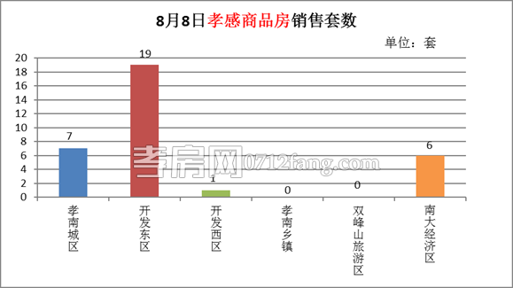 8月8日,全市的銷售套數(shù)為33套,孝南城區(qū)為7套,開發(fā)東區(qū)為19套,開發(fā)西區(qū)為1套,南大經(jīng)濟(jì)區(qū)為6套。