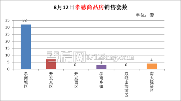8月12日,全市的銷售套數(shù)為46套,孝南城區(qū)為32套,開發(fā)東區(qū)為7套,孝南鄉(xiāng)鎮(zhèn)為3套,南大經(jīng)濟區(qū)為4套。