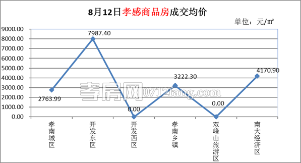 8月12日,全市的成交均價為3789.77元/㎡。其中孝南城區(qū)為2763.99元/㎡,開發(fā)東區(qū)為7987.40元/㎡,孝南鄉(xiāng)鎮(zhèn)為3222.30元/㎡,南大經(jīng)濟區(qū)4170.90元/㎡。