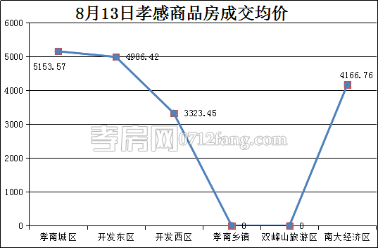 8月13日,全市的成交均價(jià)為4590.21元/㎡。其中孝南城區(qū)為5153.57元/㎡,開發(fā)東區(qū)為4986.42元/㎡,開發(fā)西區(qū)為3323.45元/㎡,南大經(jīng)濟(jì)區(qū)4166.76元/㎡。