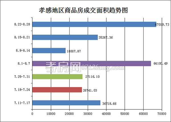 據(jù)孝房網(wǎng)數(shù)據(jù)研究顯示,從2016年8月22日到2016年8月28日,8月26日房管局?jǐn)?shù)據(jù)缺失,孝感地區(qū)六天銷售總交易記錄580套,面積為67019.73平方米,金額為352634823.71元,均價(jià)為5261.66元/平方米。