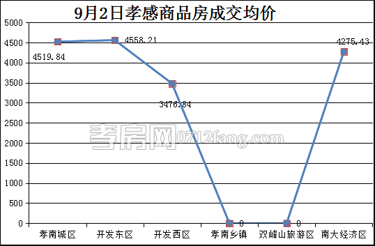 9月2日,全市的成交均價(jià)為4465.25元/㎡。其中孝南城區(qū)為4519.84元/㎡,開(kāi)發(fā)東區(qū)為4558.21元/㎡,開(kāi)發(fā)西區(qū)為3476.84元/㎡,南大經(jīng)濟(jì)區(qū)4275.43元/㎡。