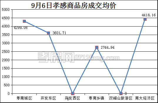 9月6日,全市的成交均價為3670.46元/㎡。其中孝南城區(qū)為4299.06元/㎡,開發(fā)東區(qū)為3601.71元/㎡,孝南鄉(xiāng)鎮(zhèn)為2744.94元/㎡,南大經(jīng)濟區(qū)4418.16元/㎡。