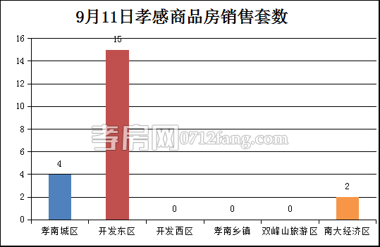 9月11日,全市的銷售套數(shù)為21套,孝南城區(qū)為4套,開發(fā)東區(qū)為15套,南大經(jīng)濟(jì)區(qū)為2套。