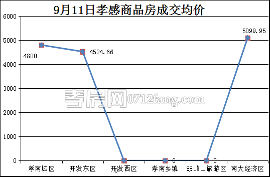 9月11日,全市的成交均價(jià)為4618.74元/㎡。其中孝南城區(qū)為4800.00元/㎡,開發(fā)東區(qū)為4524.66元/㎡,南大經(jīng)濟(jì)區(qū)5099.95元/㎡。