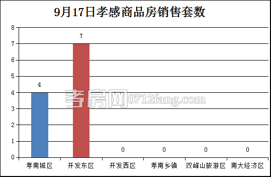 9月17日,全市的銷售套數(shù)為11套,孝南城區(qū)為4套,開發(fā)東區(qū)為7套。