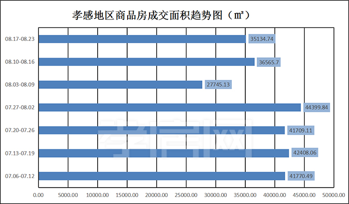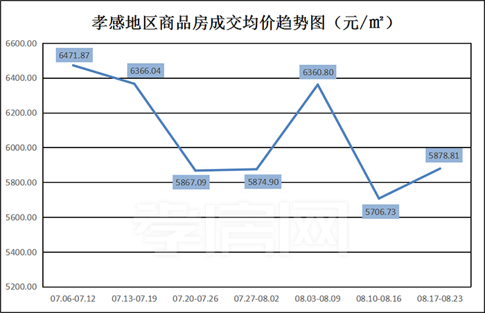 據(jù)孝房網(wǎng)數(shù)據(jù)研究顯示,從2020年08月17日到08月23日,孝感地區(qū)銷售總交易記錄287套,建面約35134.74平方米,金額為206550412.35元,均價為5878.81元/平方米。
