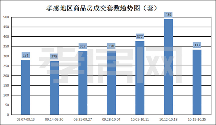 據(jù)孝房網(wǎng)數(shù)據(jù)研究顯示,從2020年10月19日到10月25日,孝感地區(qū)銷售總交易記錄333套,建面約36618.51平方米,金額為260218621.3元,均價(jià)為7106.20元/平方米。
