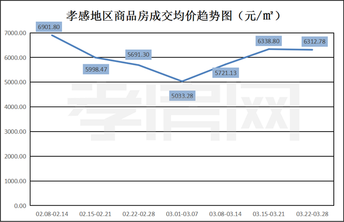 孝感地區(qū)商品房成交均價趨勢圖
