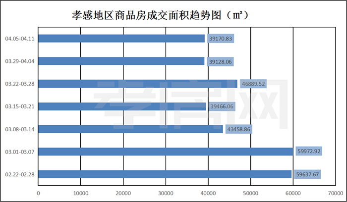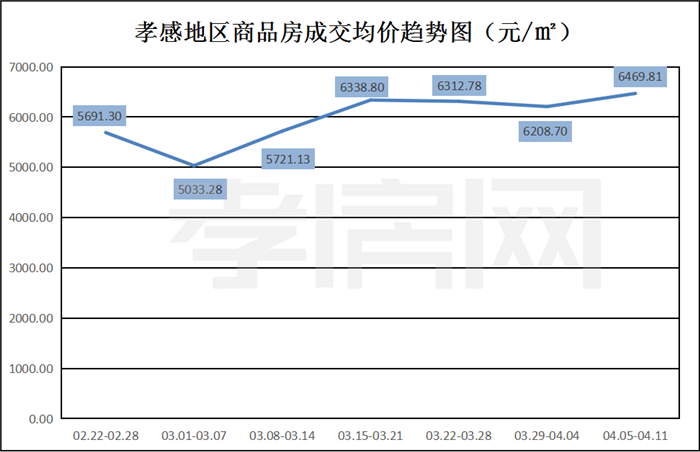 ? ? ? ?據(jù)孝房網(wǎng)數(shù)據(jù)研究顯示,從2021年4月5日到4月11日 ,孝感地區(qū)銷售總交易記錄372套,建面約39170.83平方米,金額為253427632.93元,均價為6469.81元/平方米。
