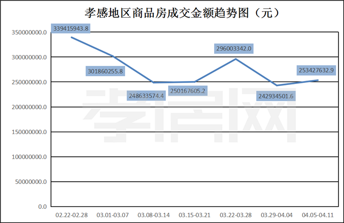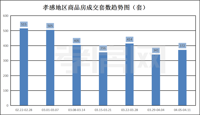 ? ? ? ?從2021年3月29日到4月4日 ,孝感地區(qū)銷售總交易記錄372套,環(huán)比上周(341套)上漲約9.1%;成交均價6469.81元/平方米,環(huán)比上周(6208.70元/平方米)上漲約4%;成交建面約39170.83平方米,環(huán)比上周(39128.06平方米)下降約0.1%;成交總金額253427632.93元,環(huán)比上周(2242934501.56元)上漲約4%。