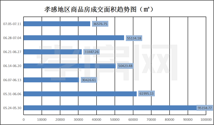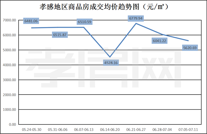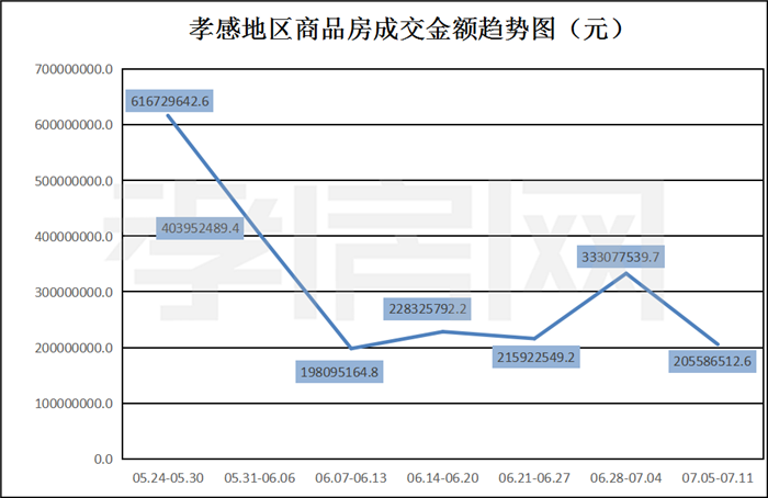 ? ? ? ?據(jù)孝房網(wǎng)數(shù)據(jù)研究顯示,從2021年7月5日到7月11日,孝感地區(qū)銷售總交易記錄256套,建面約36576.75平方米,金額為205586512.58元,均價(jià)為5620.69元/平方米。