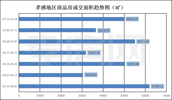 ? ? ? ?據(jù)孝房網(wǎng)數(shù)據(jù)研究顯示,從2021年7月12日到7月18日,孝感地區(qū)銷售總交易記錄255套,建面約49951.99平方米,金額為259414811.78元,均價為5193.28元/平方米。
