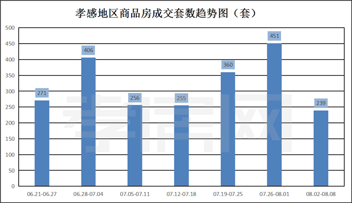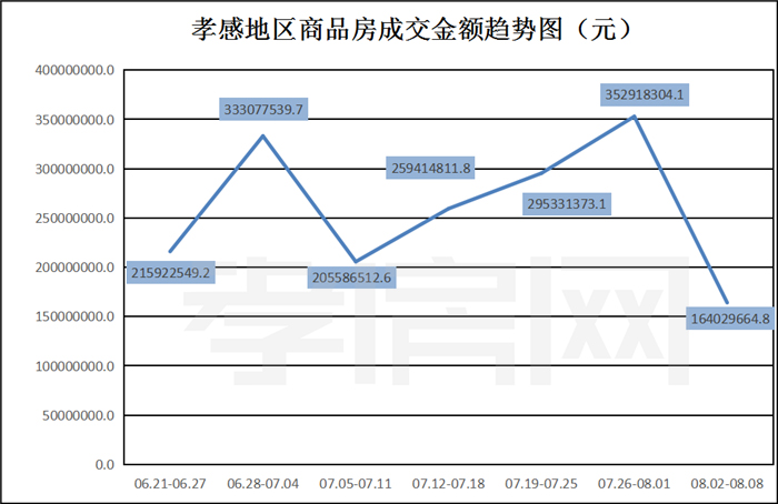 ? ? ? ?據(jù)孝房網(wǎng)數(shù)據(jù)研究顯示,從2021年8月02日到08月08日,孝感地區(qū)銷售總交易記錄239套,建面約25990.97平方米,金額為164029664.75元,均價為6311.03元/平方米。