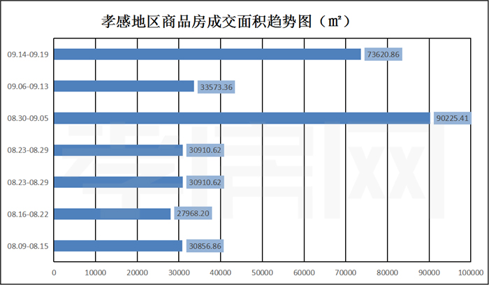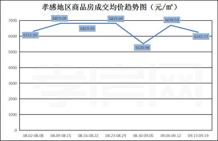 ? ? ? ?據(jù)孝房網(wǎng)數(shù)據(jù)研究顯示,從2021年09月13日到09月19日,孝感地區(qū)銷售總交易記錄654套,建面約73620.86平方米,金額為459966414.48元,均價(jià)為6247.77元/平方米。