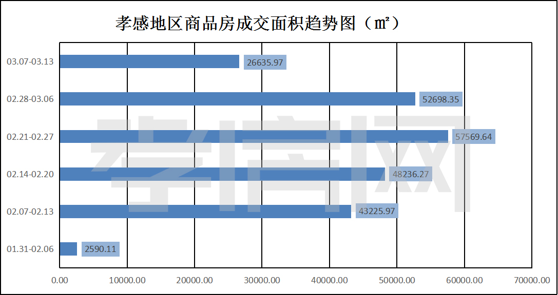? ? ? ?據(jù)孝房網(wǎng)數(shù)據(jù)研究顯示,從2022年3月07日到3月13日,孝感地區(qū)銷售總交易記錄193套,建面約26635.97平方米,金額為150166061.43元,均價(jià)為5637.72元/平方米。