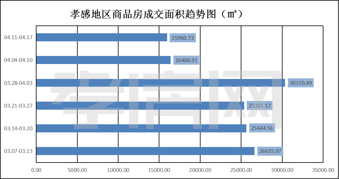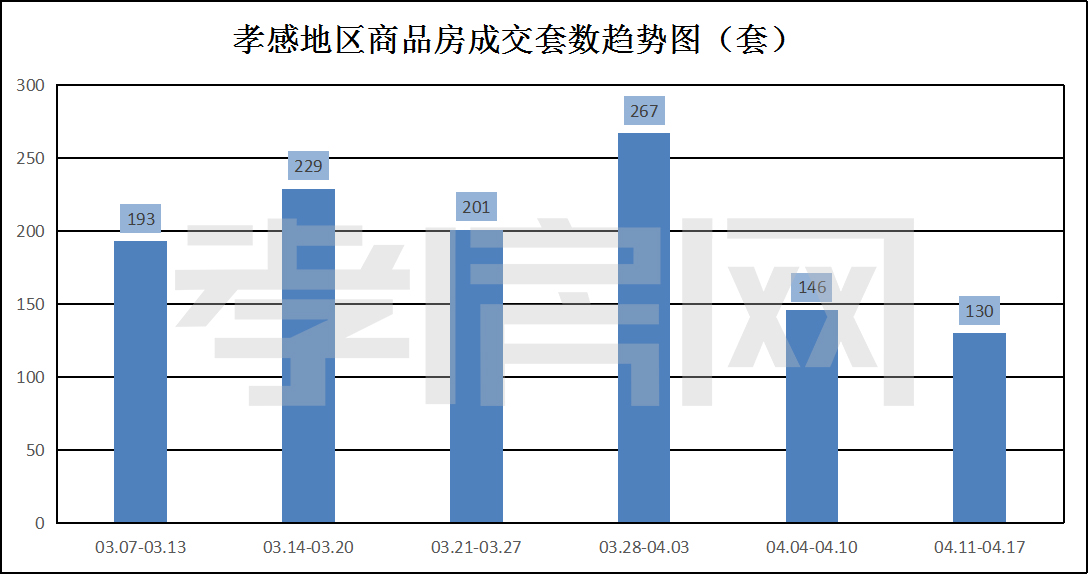 ? ? ? ?從2022年04月11日到04月17日,孝感地區(qū)銷售總交易記錄130套,環(huán)比上周(146套)下降約10.96%;成交均價5989.89元/平方米,環(huán)比上周(5941.71元/平方米)上漲約0.81%;成交建面約15960.73平方米,環(huán)比上周(16406.91平方米)下降約2.72%;成交總金額95603037.33元,環(huán)比上周(97485056.21元)下降約1.93%。