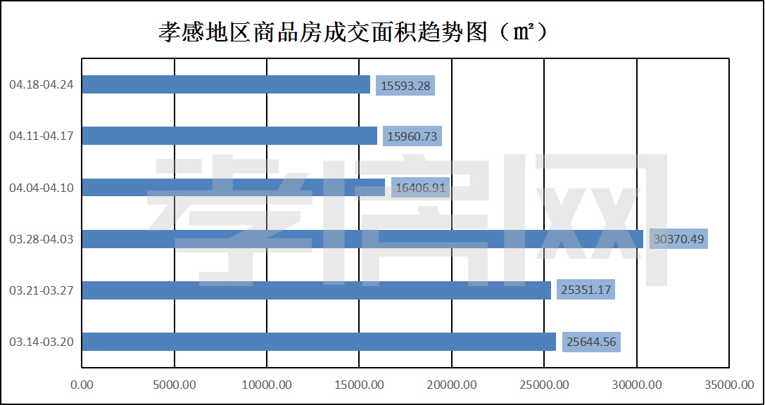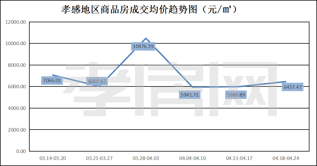 ? ? ? ?從2022年04月18日到04月24日,孝感地區(qū)銷售總交易記錄144套,環(huán)比上周(130套)上漲約10.77%;成交均價6457.47元/平方米,環(huán)比上周(5989.89元/平方米)上漲約7.81%;成交建面約15593.28平方米,環(huán)比上周(15960.73平方米)下降約2.30%;成交總金額100693142.03元,環(huán)比上周(95603037.33元)上漲約5.32%。