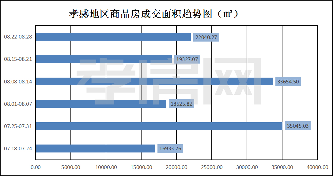 ? ? ? ?從2022年08月22日到08月28日,孝感地區(qū)銷售總交易記錄180套,環(huán)比上周(177套)上漲約1.69%;成交均價5305.53元/平方米,環(huán)比上周(5755.30元/平方米)下降約7.81%;成交建面約22040.27平方米,環(huán)比上周(19327.07平方米)上漲約14.04%;成交總金額116935297.86元,環(huán)比上周(111233119.56元)上漲約5.13%。