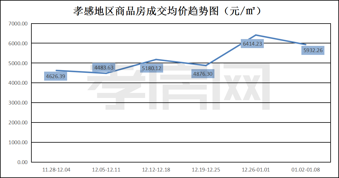 孝感地區(qū)商品房成交均價趨勢圖