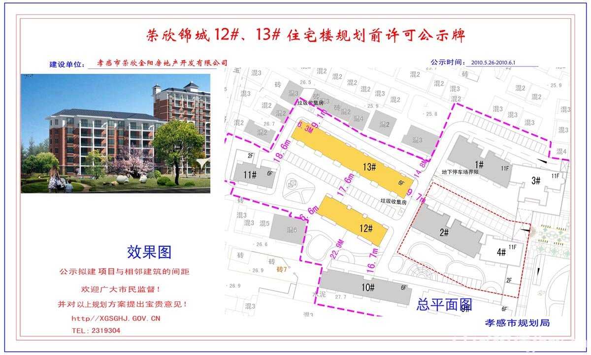 榮欣錦城12#、13#住宅樓規(guī)劃前許可公示牌