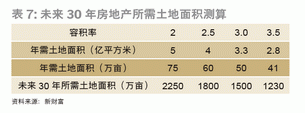 如果容積率為2倍,每年10億平方米的住宅建設(shè)面積年需土地75萬(wàn)畝,未來(lái)30年所需土地總量2250萬(wàn)畝;如果加大容積率至3.5倍,所需土地1230萬(wàn)畝(表7)。
