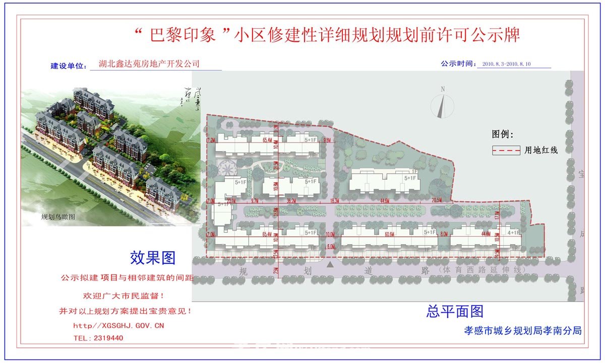 “巴黎印象”小區(qū)修建性詳細(xì)規(guī)劃規(guī)劃前許可公示牌