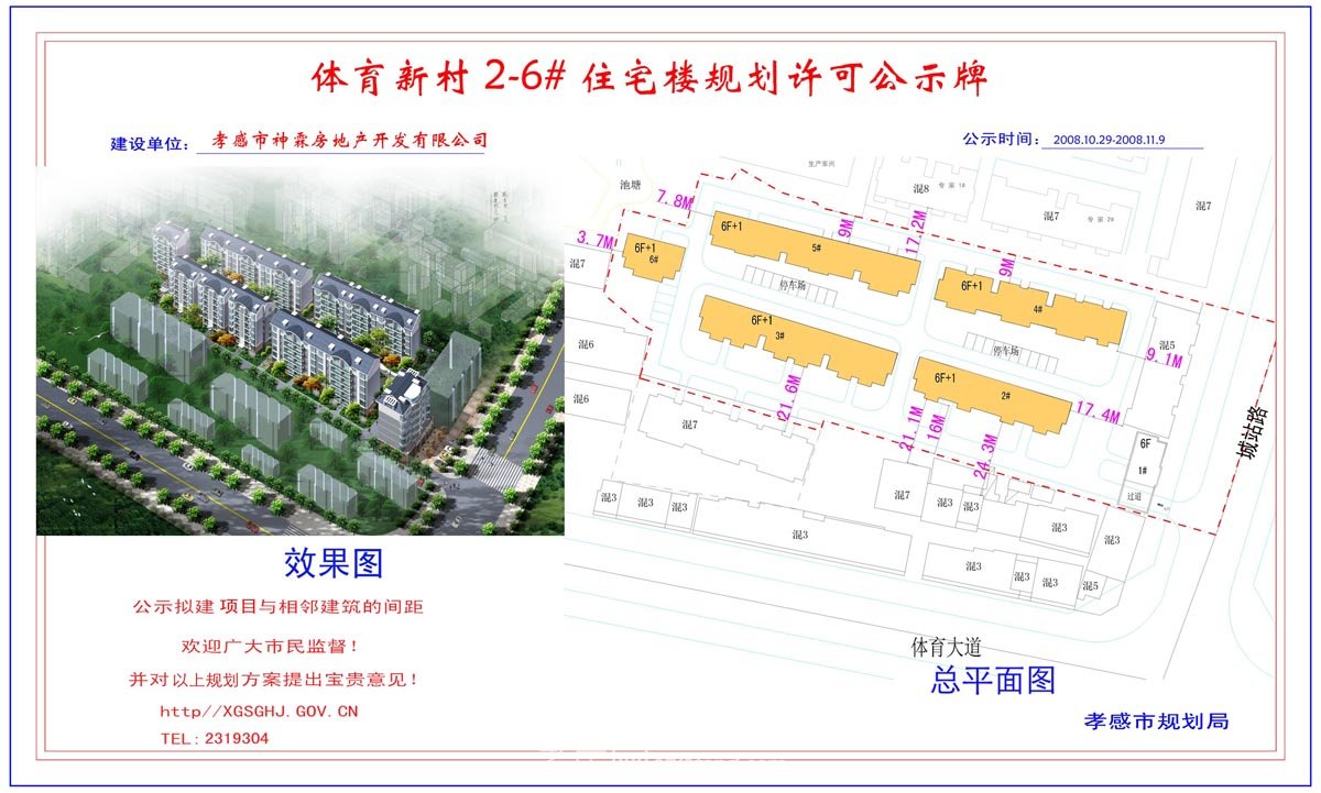 神霖房地產(chǎn)公司體育新村2-6#住宅樓規(guī)劃許可公示牌