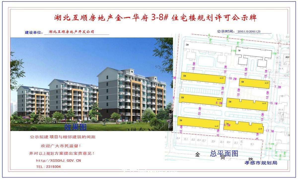 湖北互順房地產(chǎn)金一華府3-8#住宅樓規(guī)劃許可公示牌