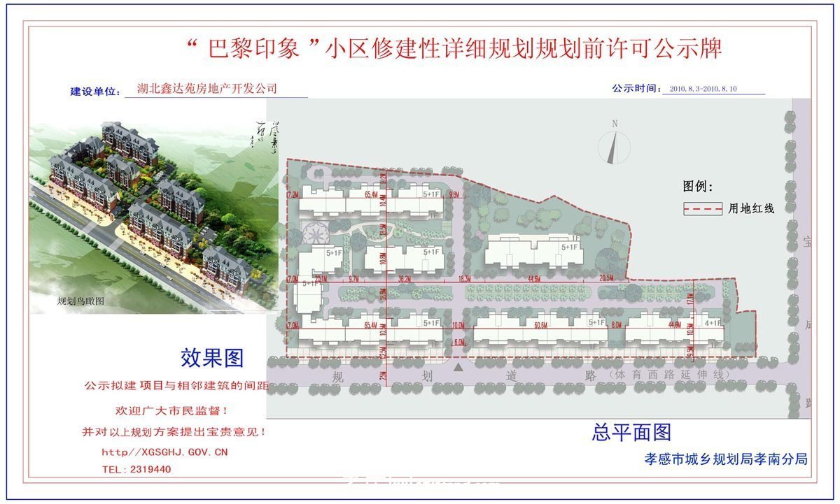 “巴黎印象”小區(qū)修建性詳細規(guī)劃規(guī)劃前許可公示牌