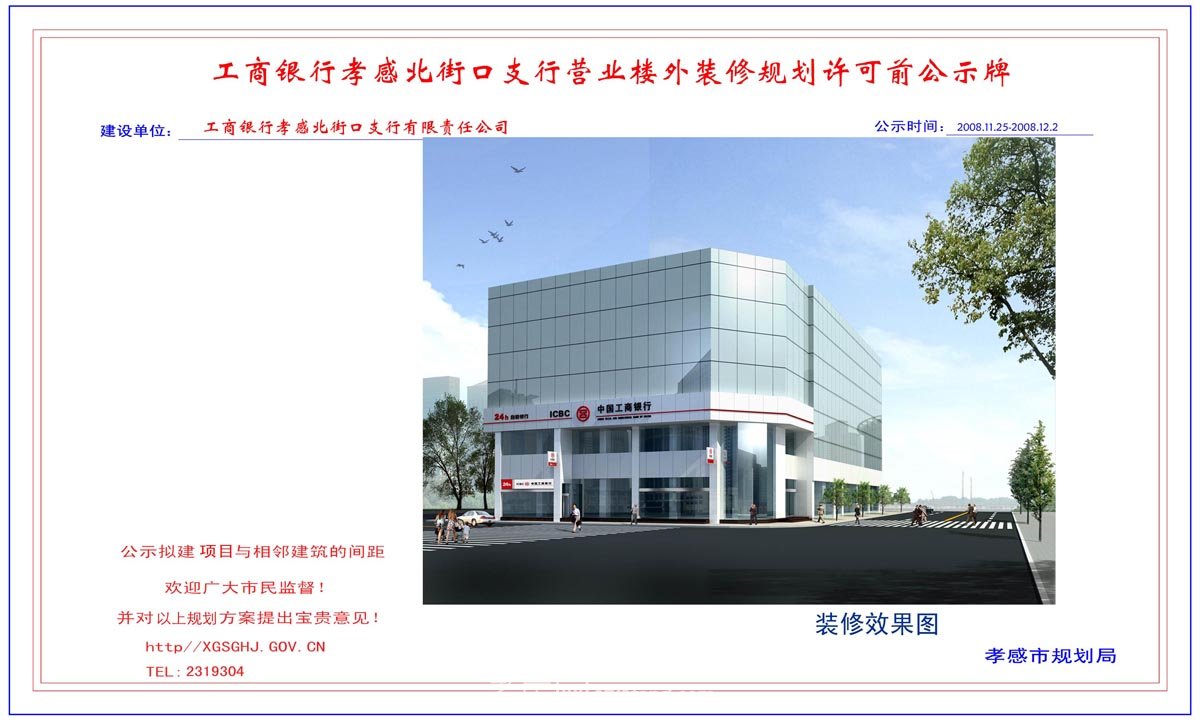 工商銀行孝感北街口支行營業(yè)樓外裝修規(guī)劃許可前公示牌